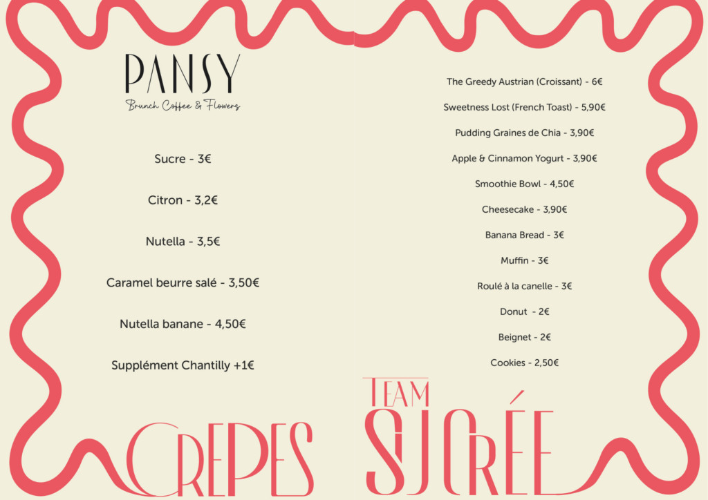 Chez Pansy, le brunch est bien plus qu’un repas : c’est un rituel joyeux, un moment suspendu entre douceur et créativité. Situé à Avignon Le Pontet, au sein du Décathlon, notre fast-food de brunch casse les codes et cultive l’authenticité.